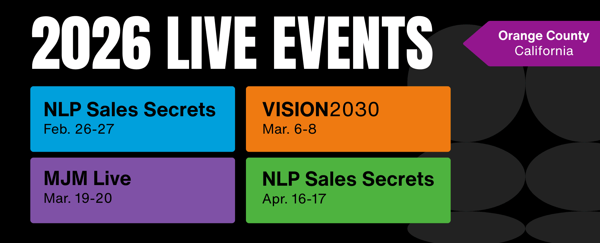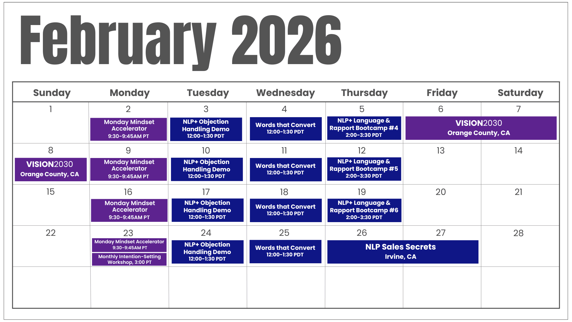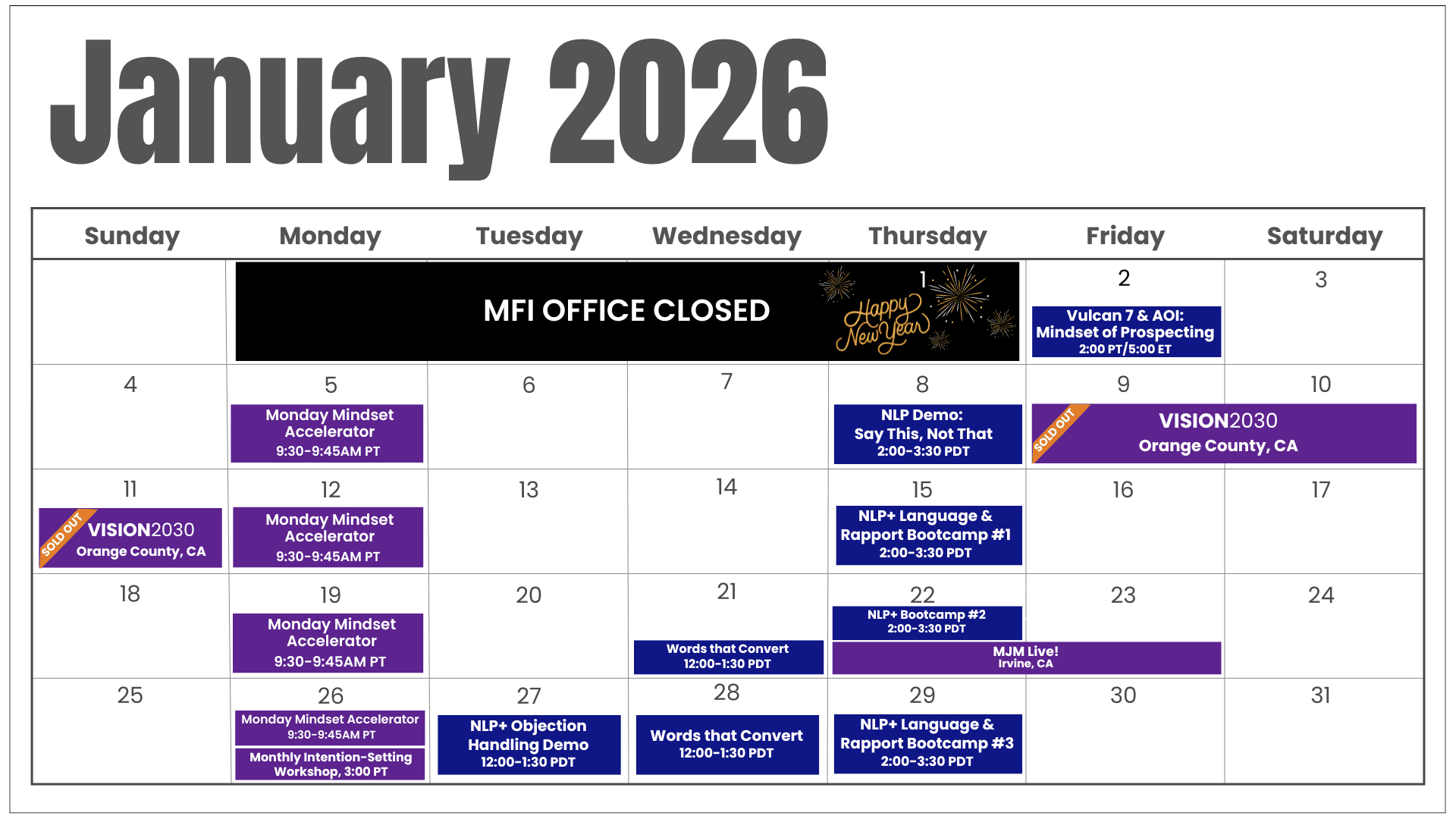 Unlock exclusive, limited-time pricing on several 2026 events — including MJM Live and the 6-week NLP+ Language & Rapport Bootcamp. Sale runs 36 hours only: Nov 28 @ 5am to Nov 29 @ 5pm. No Cyber Monday. No extensions.